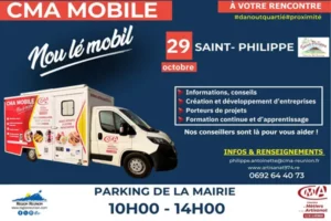 Saint-Philippe, nou arrive chez zot !– Rendez-vous mercredi 29 octobre, de 10h à 14h, sur le parking de la Mairie. Les conseillers CMA Réunion viennent à votre rencontre pour :–…