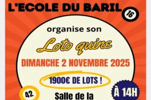 L’école du Baril organise sont loto quine le Dimanche 02 Novembre 2025, à partir de 14H dans la salle de la Mer Cassée. 1900€ de lots à gagner ! Un…