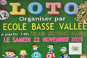 Un loto quine sera organisé par l’école de Basse-Vallée le Samedi 22 Novembre 2025 à la salle de la Mer Cassée. L’événement commencera à partir de 14H. La série de…