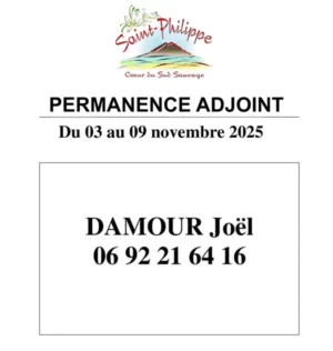 TEXTE : Permanence Adjoint du 03 au Novembre 2025. DAMOUR Joël, Tél : 0692 21 64 16