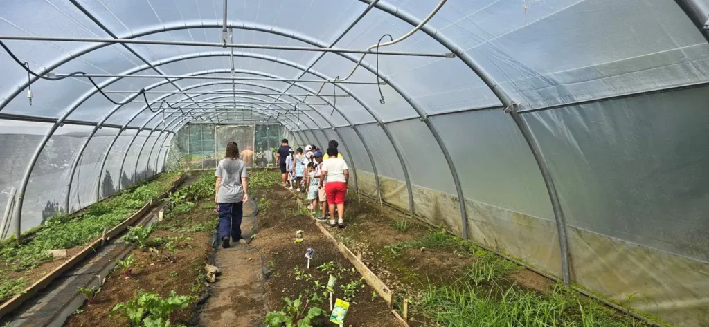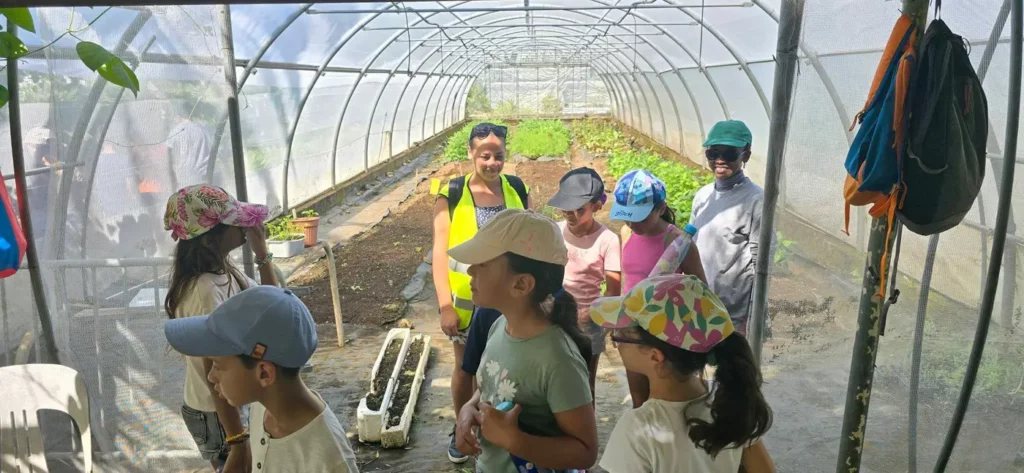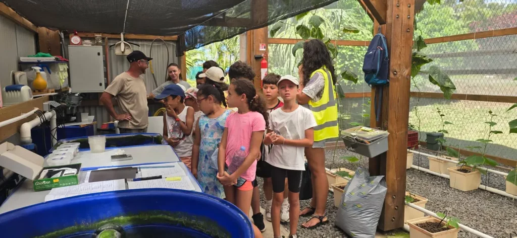 Ce matin les enfants du centre aéré ont pu visiter la serre aquaponique et ont appris comment avec des poissons on pouvait avoir de belles salades .Ils ont aussi visité les autres serres traditionnelles dans lesquelles aucun pesticide n’est utilisé.