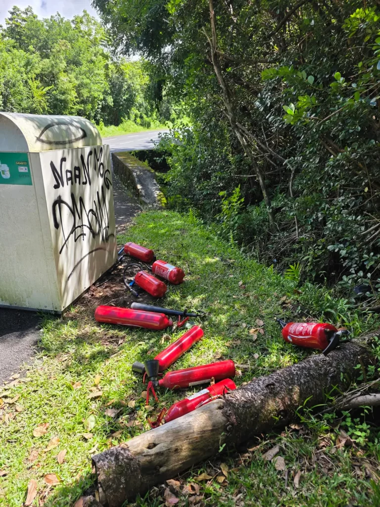 La Municipalité par le biais de la police municipale signale et dénonce un acte inacceptable de dépôt sauvage constaté à proximité d’une borne à verre dans la commune de Saint-Philippe. Plusieurs extincteurs ont été abandonnés sur place, en dehors de tout cadre réglementaire, mettant en danger l’environnement ainsi que la sécurité des usagers.