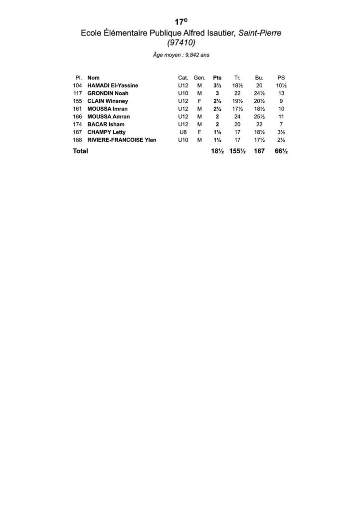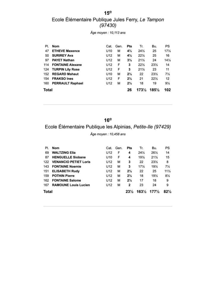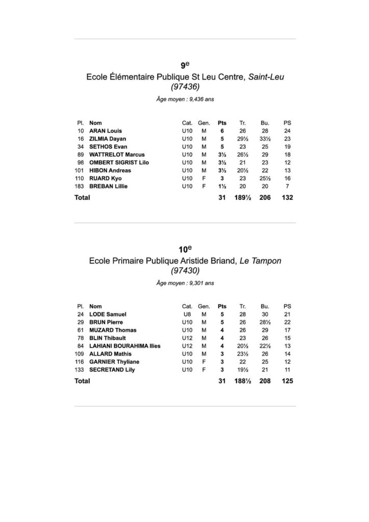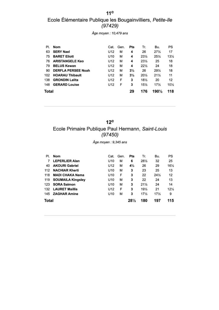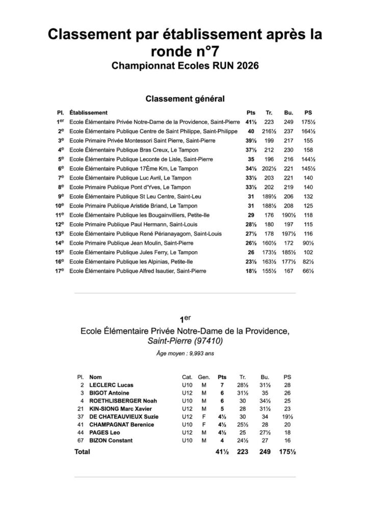 Vous trouverez ci dessous le classement général ainsi que des photos des élèves de l’école du Centre de Saint Philippe qui sont arrivés 2ème de la compétition. L’école du centre à donc été déclarée vice championne des écoles 2026.