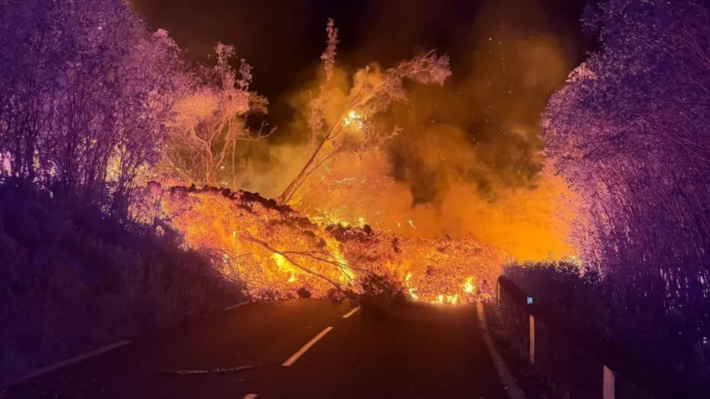 - Des écoulements de lave restent visibles, liés à la vidange progressive des tunnels de lave.