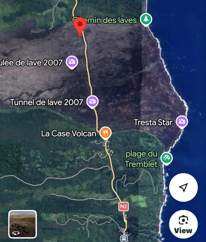 L’éruption volcanique a généré une coulée de lave qui se dirige vers la Rn2, nous vous informons que l’axe routier sera fermé à la circulation à partir de 15h avec un point de retournement mis en place à l’endroit indiqué sur l’image ci-jointe.