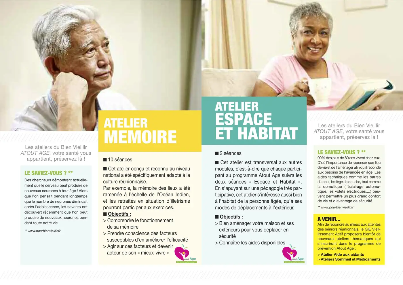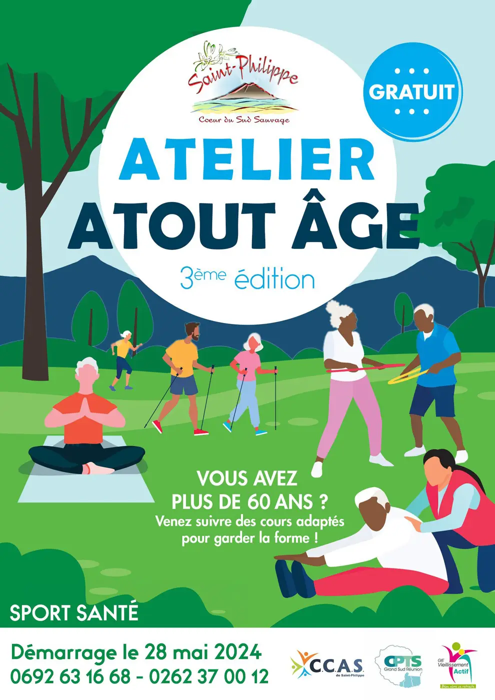 La ville de Saint-Philippe vous annonce le lancement de la 3ème édition des ateliers « Atout Age » à destination des séniors retraités de 60 ans et plus et désireux de Bien Vivre leur âge. Des ateliers en toute convivialité et au plus près de chez vous, sur les thèmes de la mobilité et de l’habitat.